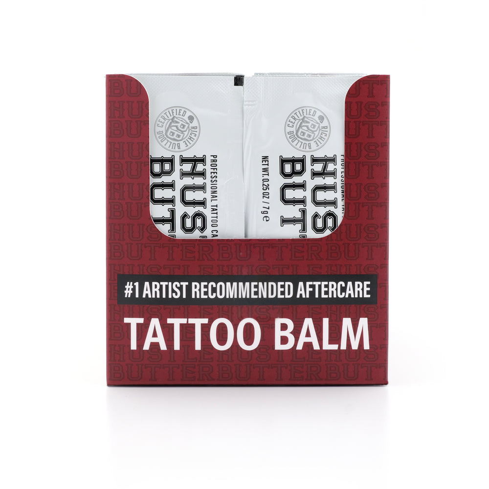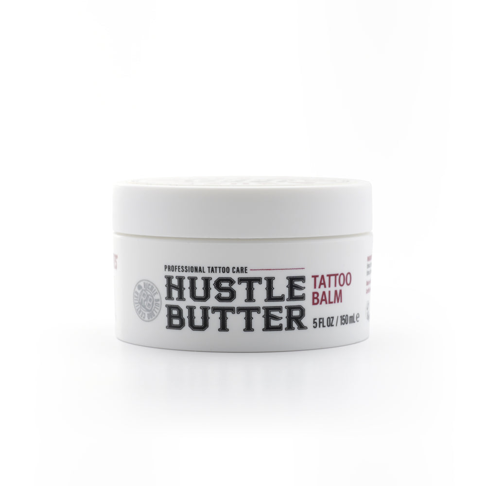 The original Hustle Butter Deluxe® tattoo ointment - luxurious and rich. Used as a tattooing glide, tattoo aftercare, or just as a daily moisturizer, this signature tattoo cream is loved by tattoo artists and their clients.