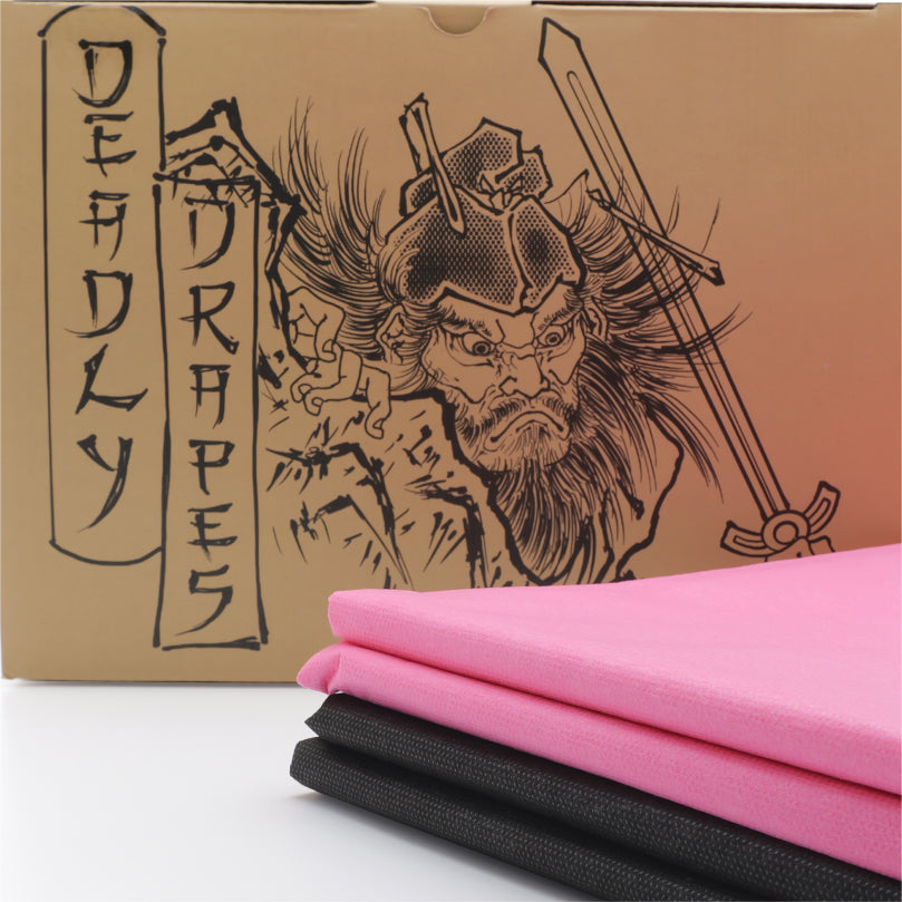 Deadly Bed Drapes are made to cover & protect even the largest of tattoo beds. These 40x90” sheets use a super strong non-woven fabric backed with a layer of polyethylene to keep your surfaces dry and your clients comfortable.. No more rips, tears or peeling your bed drape off your client at the end of each session.