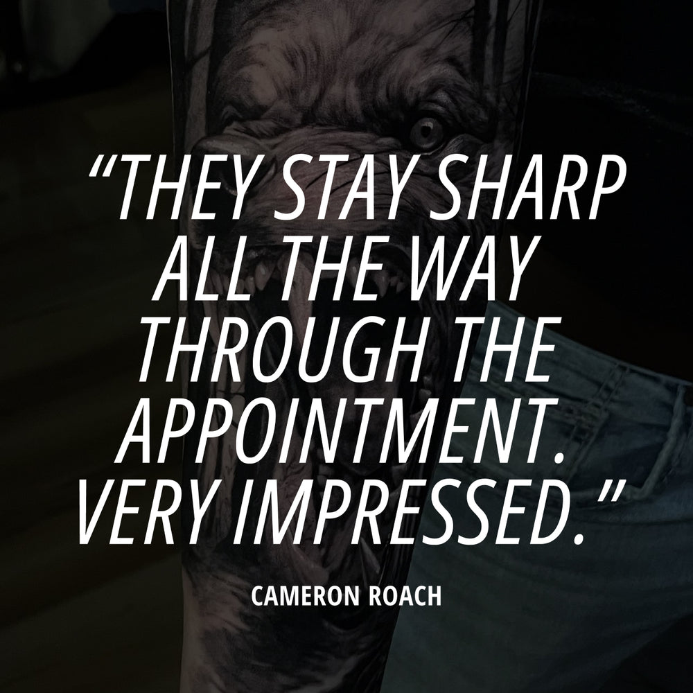 I like the light string in them, I feel like I’m getting the full torque of the machine, and the little dimple at the back fits my finger nicely while I’m lining