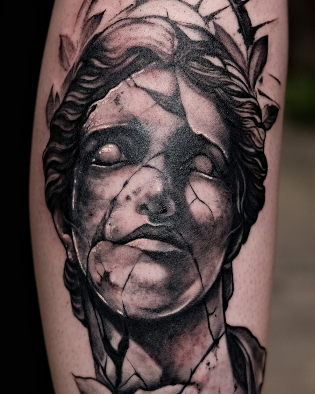 His shop, @closedcaskettattoos in Ajax, Ontario, is a gathering place for highly-skilled Black and Grey artists (10 of them!), dedicated to everything from dark Realism to darker Realism, and maybe a sprinkle of Bio-Organic (but with a dark twist). Except @jamesbtattoos who seems to be sneaking colour into the shop behind their backs.