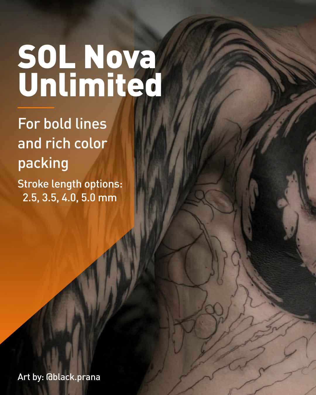 Cheyenne’s best-selling wireless tattoo machine just got better. The SOL Nova Unlimited II has been loaded up with artist-requested features that we know you’re going to love, while still delivering the performance that made the classic Sol Nova Unlimited the machine of choice for many artists.